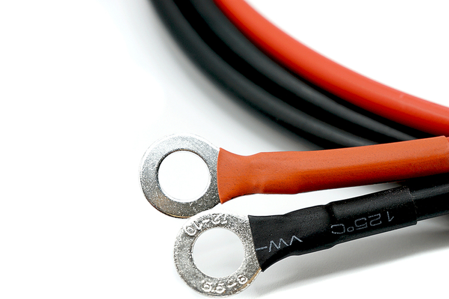 An dem einen Ende des Kabels befinden sich Ringkabelschuhe die auf die Pole Ihrer Batterie gesetzt werden. Auf der anderen Seite ist das Kabel für den Solar-Laderegler mit Aderendhülsen isoliert.