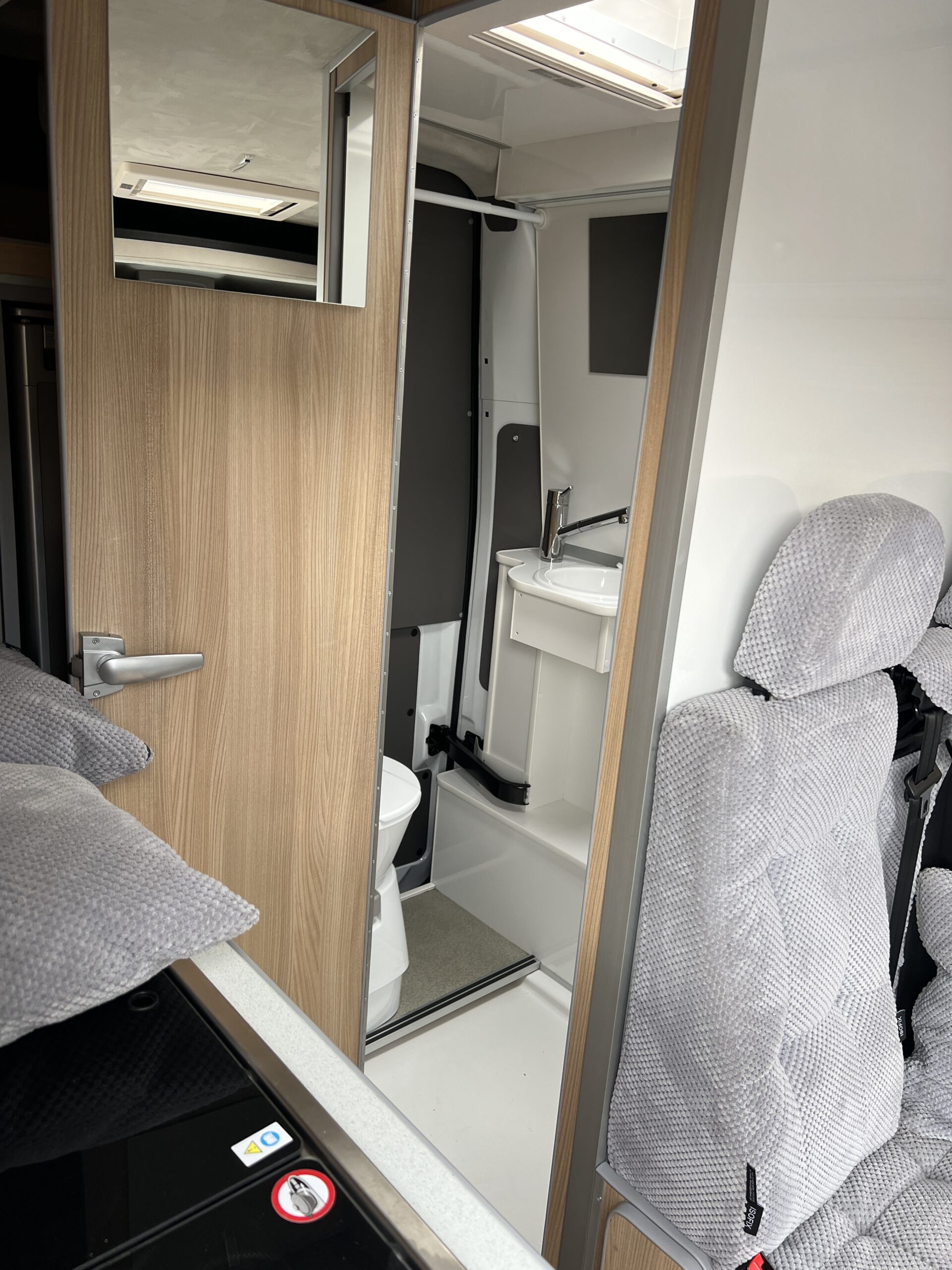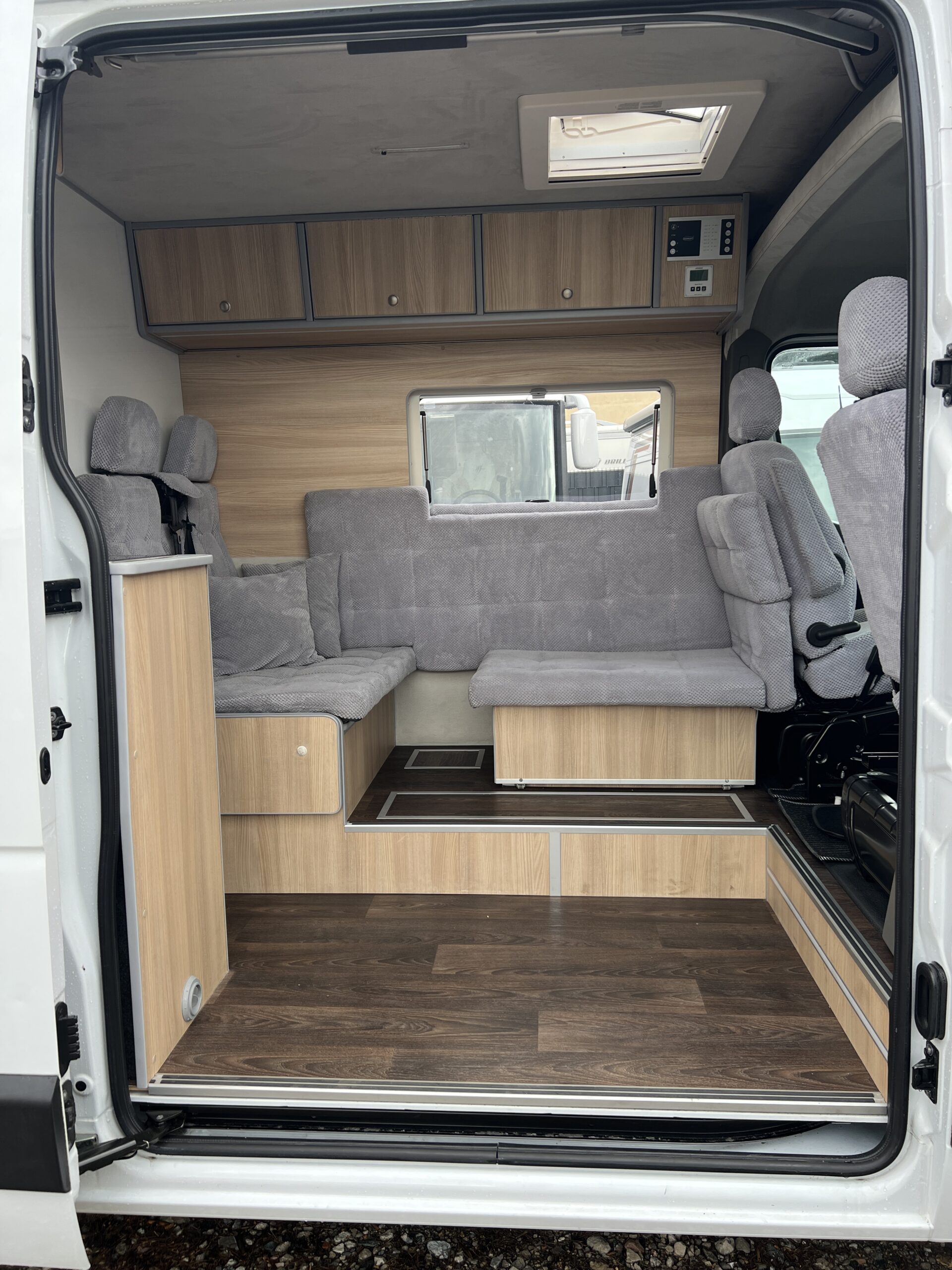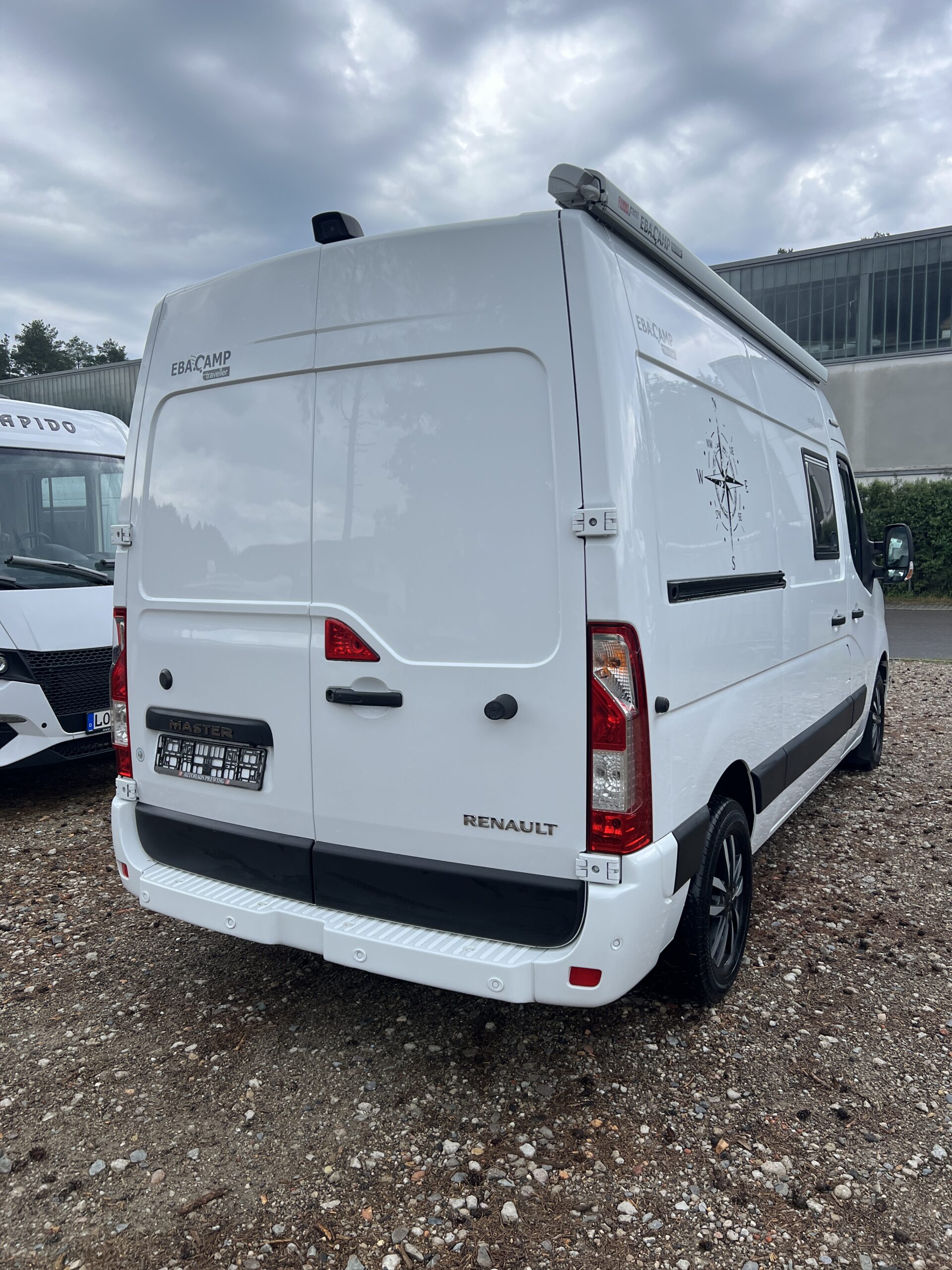 Der Renault hat einen speziellen großen Wohnbereich vom europäischen Innenausbau-Spezialisten. Nasszelle im Heck mit WC und großer Dusche – ideal für autarkes Campen. Webasto-Diesel-Standheizung. 100 Watt-Solaranlage. Länge 5,54 m. Innenraumstehhöhe 1,85 m. Schaltgetriebe, Fiamma-Markise, Klimaanlagen, Klimautomatk/Klimatronic, Navigationssystem, Scheinwerfer Xenon, Regensensor, ESP, ASR, ABS, Parktronic System (PTS), Multifunktionslenkrad, Radio, Bordcomputer, Tempomat, Kühlbox, Fensterheber elektrisch vorn, el. Wegfahrsperre, Zentralverriegelung (mit Fernbedienung) Airbag Fahrer und Beifahrer, Scheinwerfer Nebel, Toterwinkelassistent, Rückfahrkamera, Einparkhilfe etc. Die großzügige Sitzecke wird einfach zum Bett umgebaut. Das Handling ist mit 5,40 m leicht und auch für Fährpassagen sehr gut geeignet. Eine Parkmöglichkeit für das Abstellen Eures PKWs bei uns ist vorhanden. Bitte bringt Eure eigene Bettwäsche mit, oder sprecht uns an.
